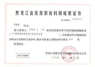 获奖级别:黑龙江省教育厅规划办教学成果三等奖(2011年)