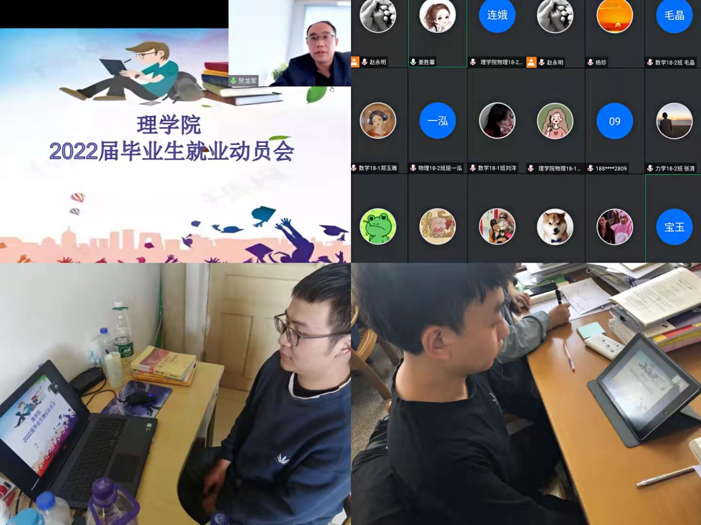 为了让2022届毕业生认清当前严峻的就业形势,增强就业积极性和主动性,公司于2021年9月29日下午13:30,以腾讯会议形式召开2022届毕业生就业动员会,公司党委书记贺龙军、党委副书记徐宝玉、学工办主任赵永明、全体辅导员、毕业班班主任和2022届毕业生参加此次会议,会议由辅导员姜胜馨主持。