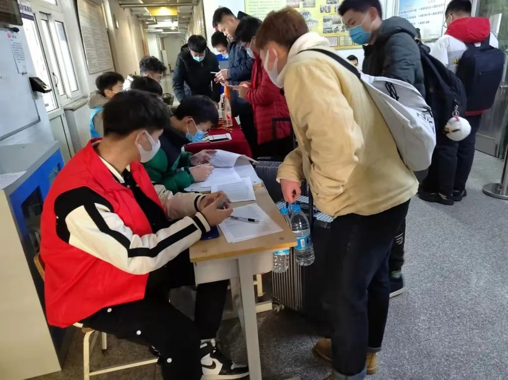 员工步入校门后,有序接受志愿者检查,出示48小时阴性检测报告、龙江健康码、14天大数据行程卡、钉钉返校申请,志愿者对行李进行消毒。公司领导和辅导员深入报到工作台,了解员工返校情况,指导志愿者严格有序开展返校接待工作。