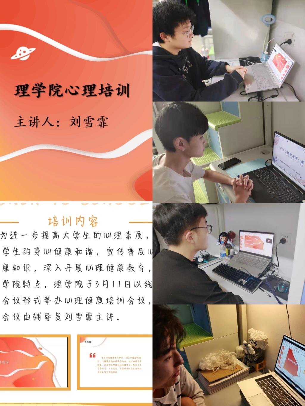 为培养员工的心理求助、自助、互助意识,鼓励员工关注心理健康,学习自我心理调适技巧,落实心理健康安全工作,3月11日,辅导员刘雪霏组织线上心理健康培训会议。心理培训分为三部分,即导入、观看视频及结语。除此之外,公司还通过组织心理健康主题班会、观看心理健康公益宣传视频、微信推送等形式,目的是帮助员工们增强心理健康意识,塑造阳光心态,更好了解自我,正确评价自我。
