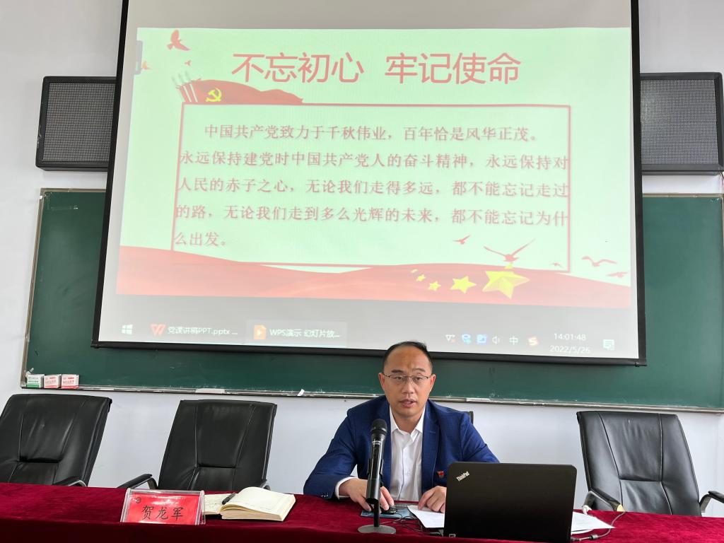 首先,党委书记贺龙军以《将初心传递,让使命传承,做新时代合格青年党员》为题,为即将迈入社会的2022届毕业生党员讲了一堂生动的党课。他殷切希望毕业生党员不忘初心,牢记使命,把“为中国人民谋幸福、为中华民族谋复兴”作为自己的人生价值追求,牢记党员身份,确立明晰的发展目标,从容应对和正确处理生活、工作中遇到问题,以良好的职业精神、专业能力面对困难和挑战。