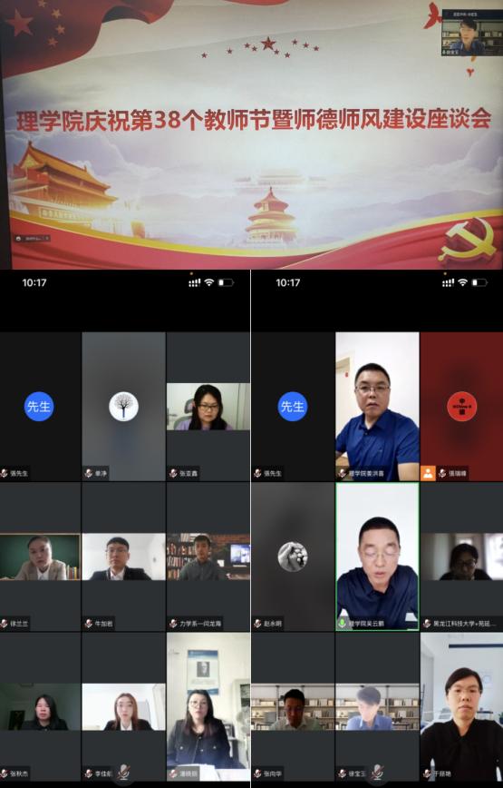 为了弘扬尊师重教的良好风气,激发广大教职工增强立德树人的使命感、责任感和自觉性,促进公司各项工作再上新台阶,ladbrokes立博于9月8日上午,以线上腾讯会议的形式召开了ladbrokes立博庆祝第38个教师节暨师德师风建设座谈会,公司班子成员、老教师代表、受公司表彰教师代表、教师党支部书记、系部主任副主任、教研室主任、ladbrokes立博执教20年教师代表、新入职教师代表参加了座谈会,会议由党委副书记、工会主席徐宝玉主持。